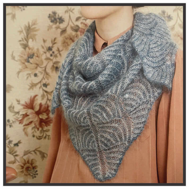 I love the way this shawl turned out! It looks ethereal, feels soft, and is a very unique shawl that would be great to wear or gift. Both mohair and linen are lightweight fibres, and so the shawl doesn’t weigh much despite there being 3 strands in each stitch.