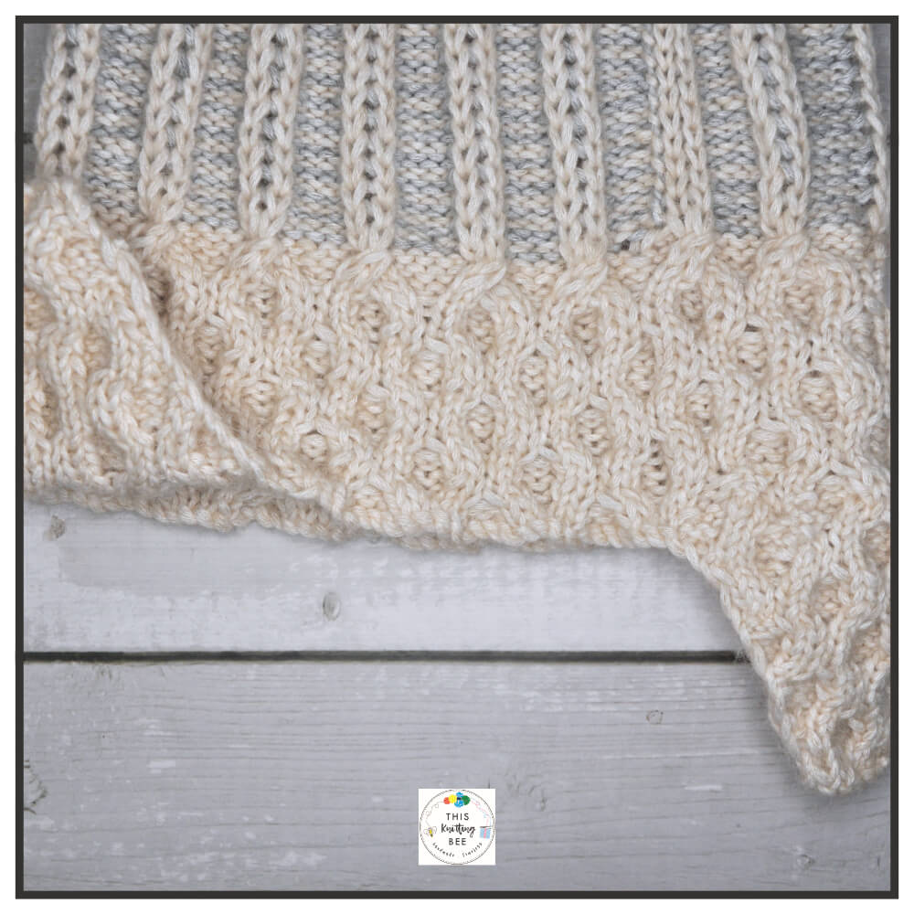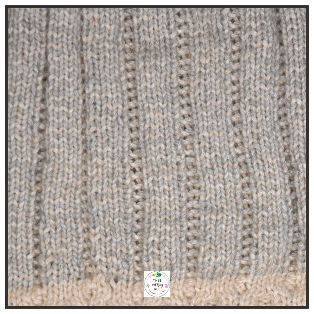 With the recommended 5.5mm needles, a gauge of 19sts and 28 rows can be achieved. However, since I was using smaller needles throughout, my gauge was similar to what West recommended – 26sts and 36 rows in a 10 x 10cm square.